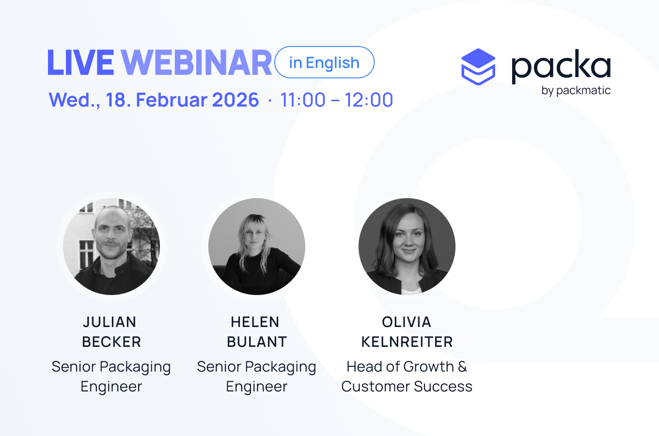 PPWR nimmt weiter Fahrt auf und August 2026 ist näher, als es scheint. Nehmen Sie an einem Packa-Webinar teil und erhalten Sie die wichtigsten Grundlagen, die neuesten PPWR-Updates und einen klaren Aktionsplan für Packaging- und Procurement-Teams. Hinweis: Das Webinar findet auf Englisch statt.